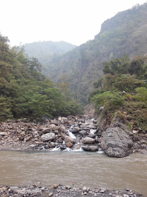 過青翠橋後沿路踢下北港溪底 很快便接到北港溪與尾敏溪匯流口