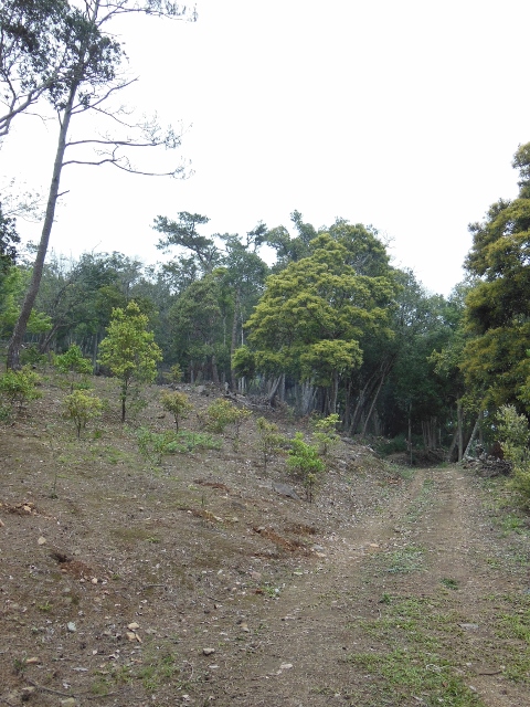 好奇沿著林道往前踢了一陣 遇到造林工人開柴車載著香楠樹苗進來造林