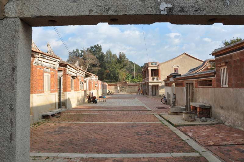 較多,下鄉則大都為一落二櫸頭或四櫸頭的基本閩南建築,全境以梳形佈局呈現.