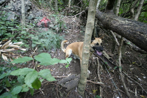 沿途為稍濃密的樹林,路跡尚清楚,有些比較陡峭處已有綁上繩子協助,