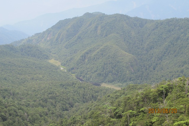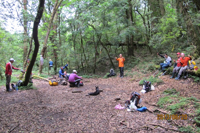 0718~0750 抵雪白營地三岔路(015),H2130m,營地廣大平坦有兩處,左上雪白山、西丘斯山,右往