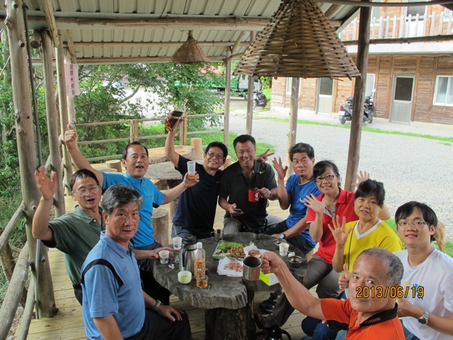 1800 晚餐開飯,席訂3000元/桌的原住民風味餐,常務理事郭兄加碼2瓶維士忌,席後又回到涼亭,林東