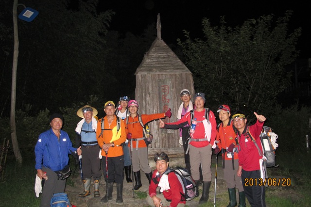 0330 司馬庫斯伯特利山莊(001)出發,H1560m,先依例在部落前來張團體照後,戴起頭燈揮別司機阿