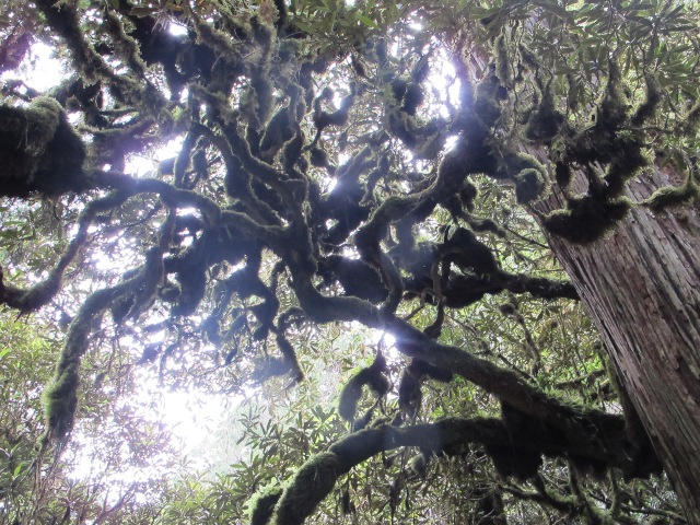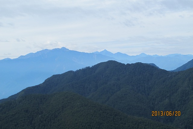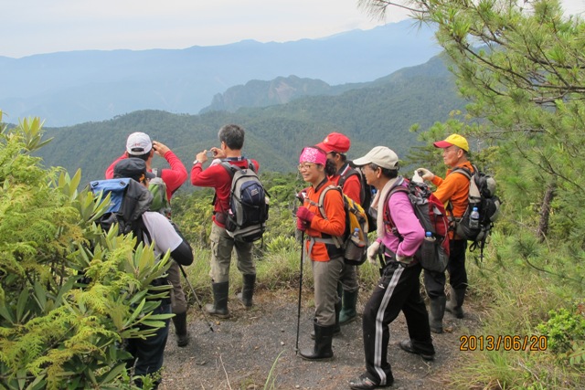 0850 越過古道最高點(018),H2315m,樹梢中透空展望聖稜線及大霸尖山,過了最高點一路向下就輕鬆