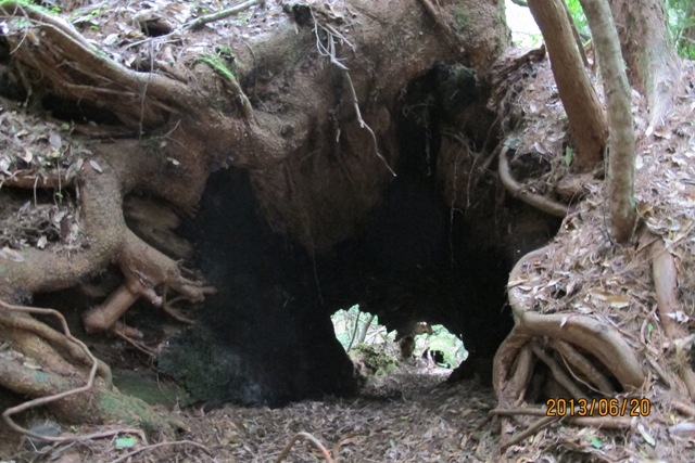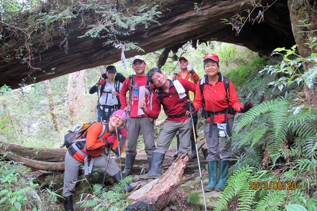 0700 大樹洞+巨木(014),H2025m,一顆中空的巨倒木斜躺在山徑旁,大夥兒下去洞口拍照,學電影裡