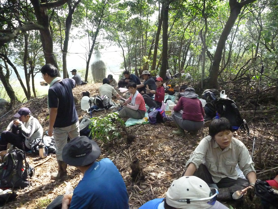 1112 「清淨天地」,發覺隊伍陸續由紅淡山另一頭下來,領隊江啟祥決定在此午餐。我因為在鳥嘴尖西峰探路,多花了十分鐘來回,而脫離隊伍,没有發覺隊伍在之前的叉路取左上行,現在只好與他們反向而行,再去登紅淡山。