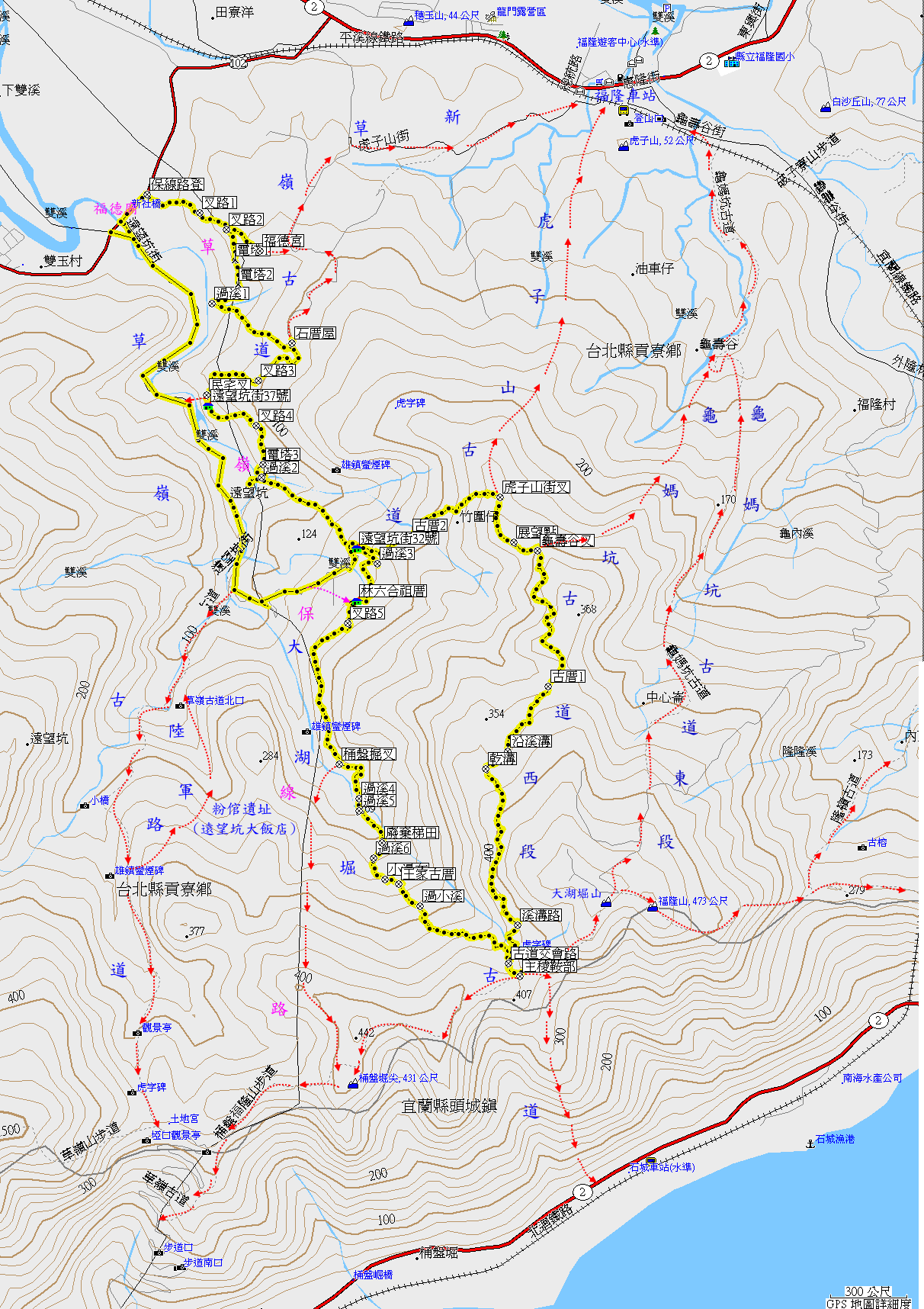 近來幸福隊探勘組,依藍天圖集不遺餘力地在福隆地區打通相關古道,其中以虎子山古道最引人【藍天圖集(五006)中標示遠望坑古道】,此古道遍查相關資訊闡述也最少,mori兄雖在登山記錄中有所說明,但也僅於文字表現,未見實際圖資;暫不論是否依循古道闢徑,然幸福隊探勘組所付出的心力自是不在話下,在此感謝