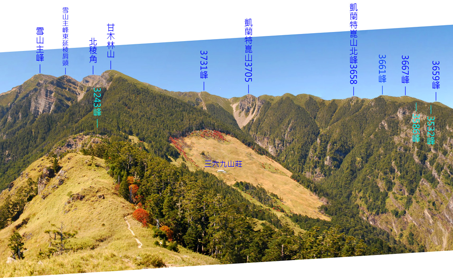 若根據戶外生活的資料,該路是位於凱山的北方,然而個人2012年9月的實際走訪,從雪北山屋往南行進,卻是先到凱蘭特崑山再到水源路口"@@
