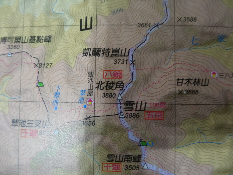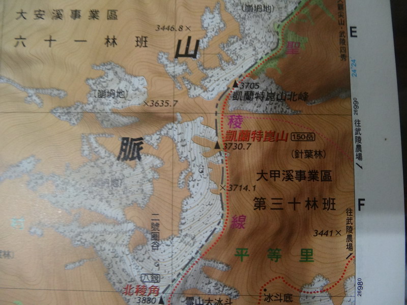 2.上河文化出版的1:100000台灣地圖(抱歉我只有這本)---凱蘭特崑山的位置在南北走向的稜脈,位於Garmin所標示的位置南方