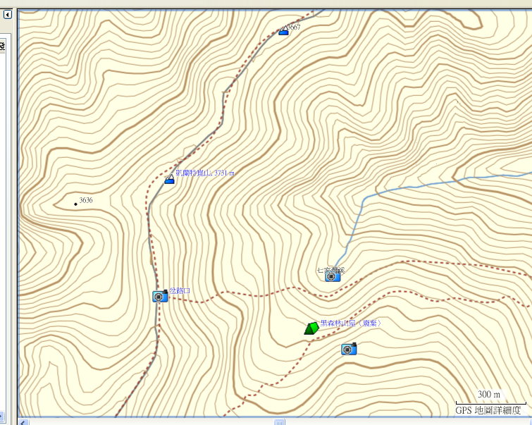 因為大家都認為不鏽鋼基點所在的山峰就是凱蘭特崑山,所以回來繪製地圖時,就沒有深究山峰的位置,就把往三六九山莊的岔路口繪製在南鞍處。