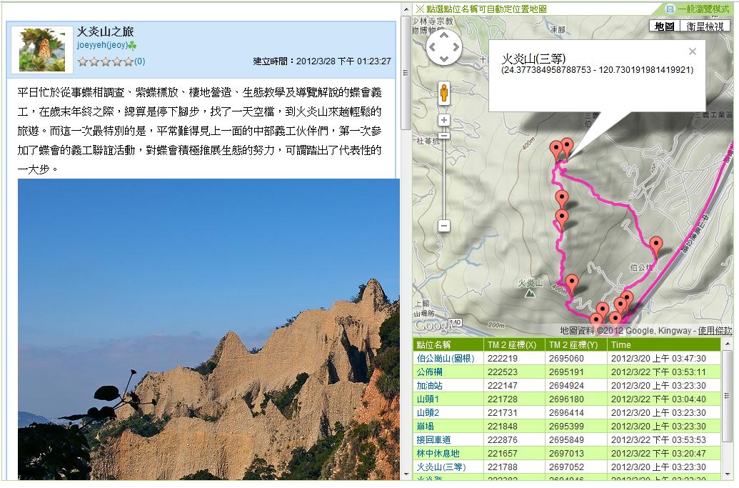 兄在登山行程紀錄區所發表的火炎山之旅一文來做示範