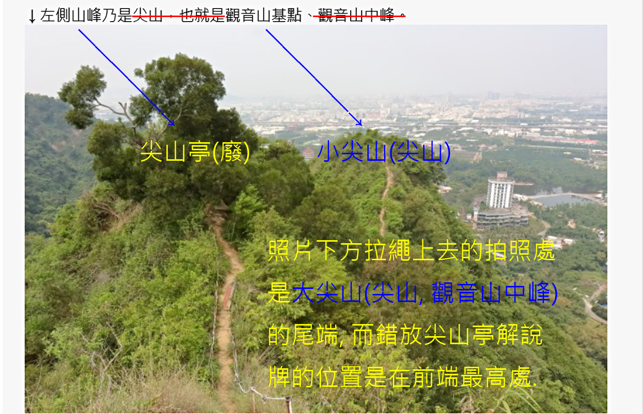 ↓左側山峰乃是尖山,也就是觀音山基點、觀音山中峰。