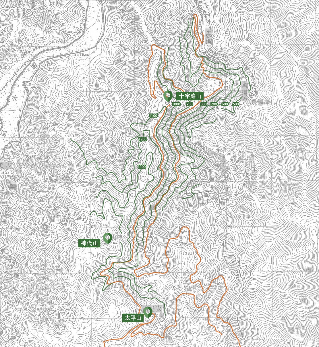 原先預定如果不能從鳩之澤過多望溪的話,就從留茂安上嘉平林道,從神代山附近的可能運材林道,一路走至舊太平聚落,而不是走嘉平林道進入舊太平,但可能也會遇到許多坍塌。