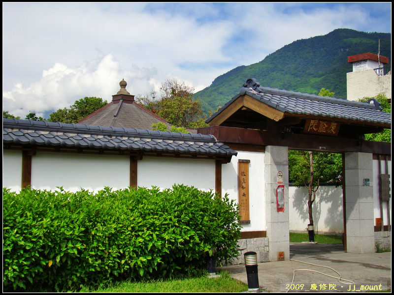 ◎ 來到吉安慶修院的大門口, 仰望, 是才剛爬過的初英山.
