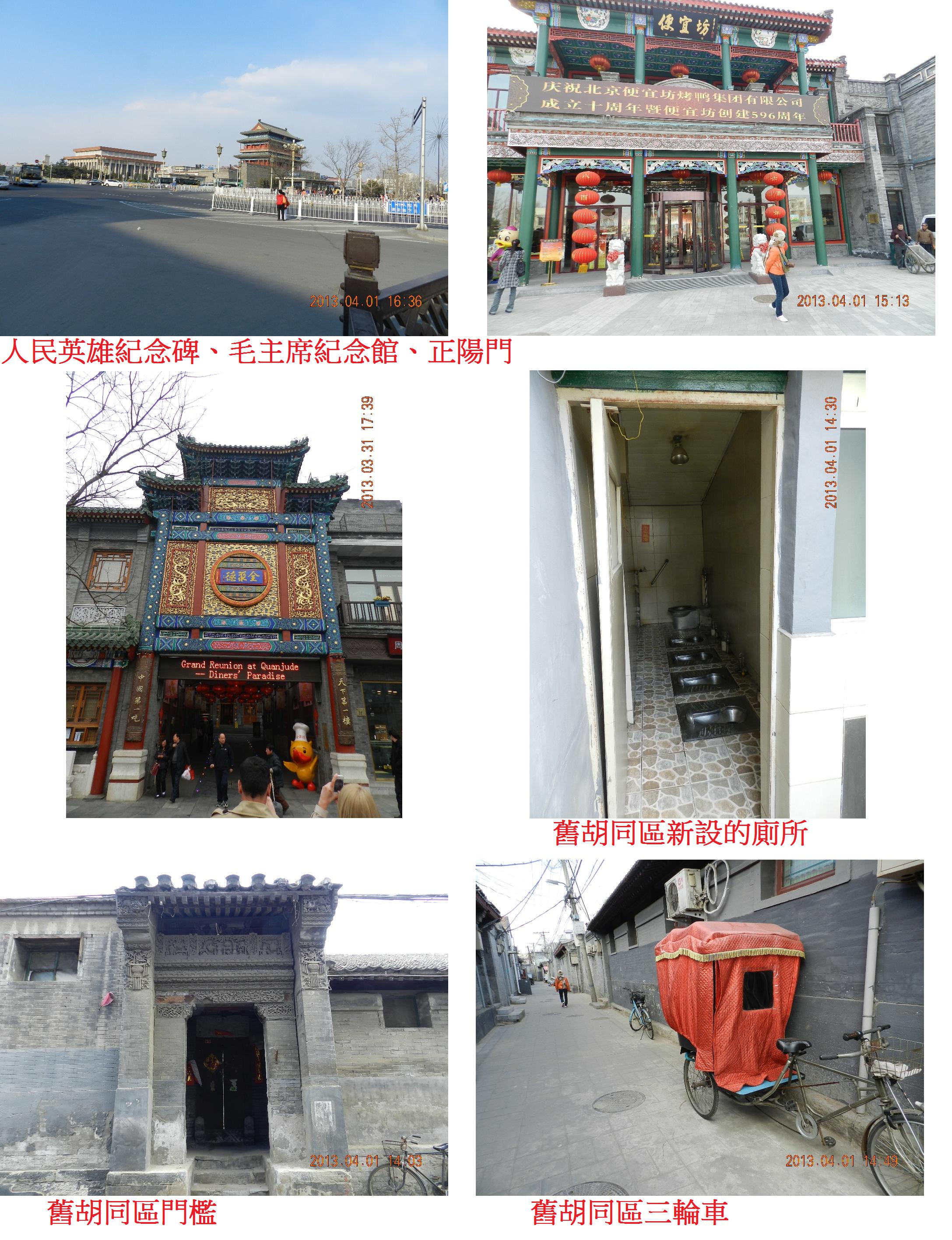 正陽門東南方有長巷X條、草廠X條等路,這區域是北京的舊胡同區,區內都是舊時明清的建築物,雖然北京市政府有整修外牆,但內部還是蠻破舊擁擠的,新設的廁所上大號是四人蹲著互相欣賞,有共同閒話家常的機會,不知台灣的女士敢不敢進入使用?