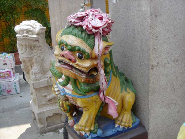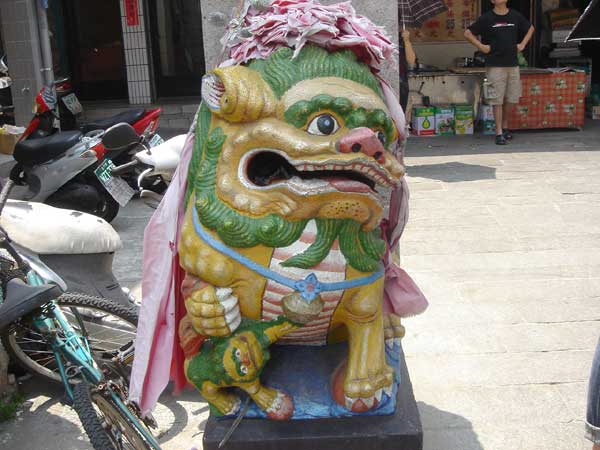 比較有趣是坊腳有八支石獅護守,其中一隻五彩,其她則保持石頭原色.原來這隻母獅被賦予管理金門眾多風獅爺的責任,是所有風獅爺的母獅王,每逢初一十五都有老婦人來祭拜,相當有趣.