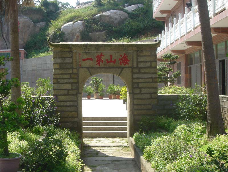 海印寺左前方有圓拱石門叫做石門關,是太武山十二奇之一.石門關用石砌造,上有石護檐,中央開拱門,宛若出入的關口,上方有橫額一方,題「海山第一」四字,為明臣盧若騰於明王永曆十五年(1661)所書,寓意「海上各島,浯洲最著;諸島名山,太武最著」,但因朝代更迭後人忌諱而將盧若騰的署名磨去,只留下「永曆辛丑」字樣,現列為三級古蹟.