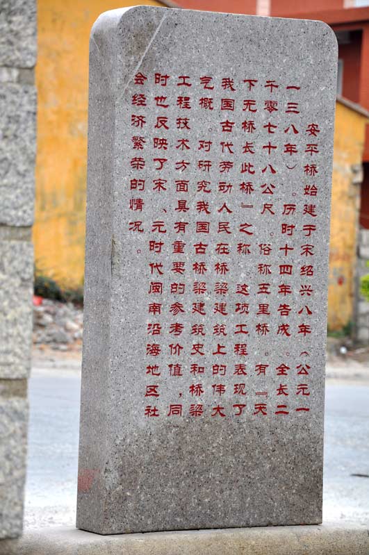 西元 l138 年 ),二十一年 ( 西元1151年 ) 完成,前後歷時14年,是一座用花崗岩構築的梁式跨海長橋.原記載“其長八百十有一丈(2255