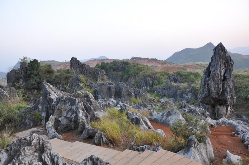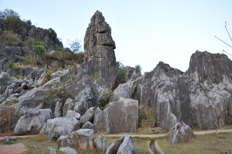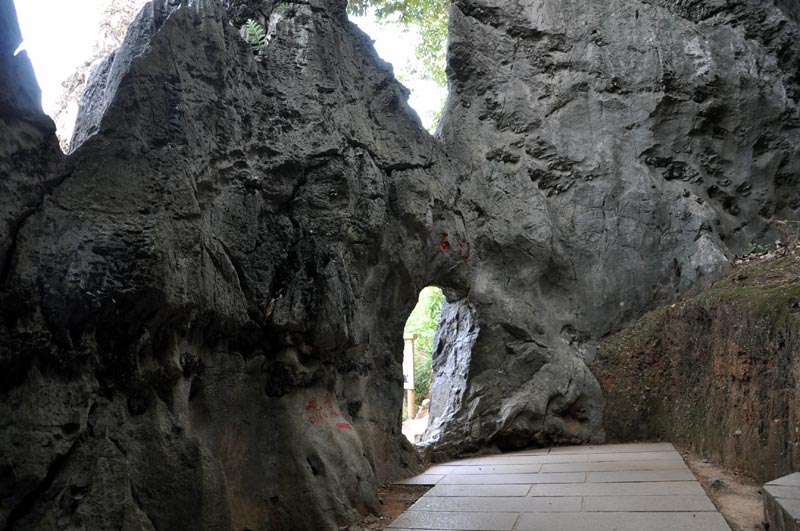洪雲山石林位在鱗隱石林景區西側,距鱗隱石林1.5公里,面積不到1平方公里,卻佈滿着多樣的石芽和石柱,當局在石林區築步道貫穿,繞不勝繞,若沒心理準備肯定累翻.洪雲山也有個洪雲洞,洞中可見尚在發育中的石乳、石笋、石柱,是典型的喀斯特溶洞景.