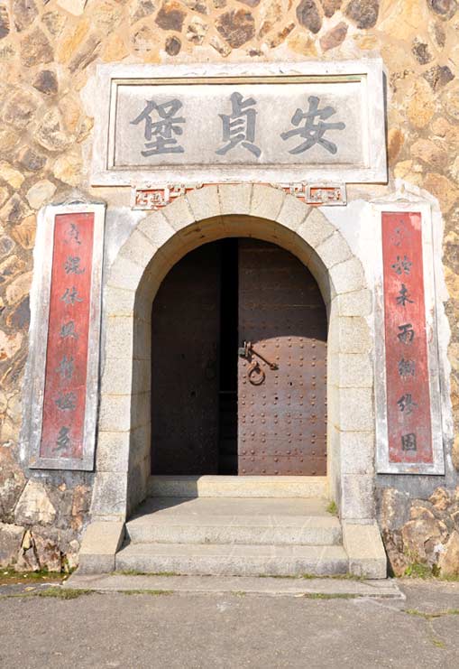 安貞堡牆厚宅深,正門為一道用巨石砌成一丈多高的拱形大門,上書“安貞堡”三個大字,兩旁書有楹聯:安于未雨綢繆固,貞觀沐風謐靜多.