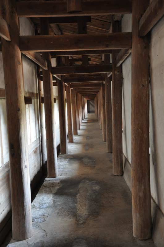 外牆下層用厚石疊砌,上沿加土夯築,牆內四週佈置有180個射擊孔和90個眺望窗口.