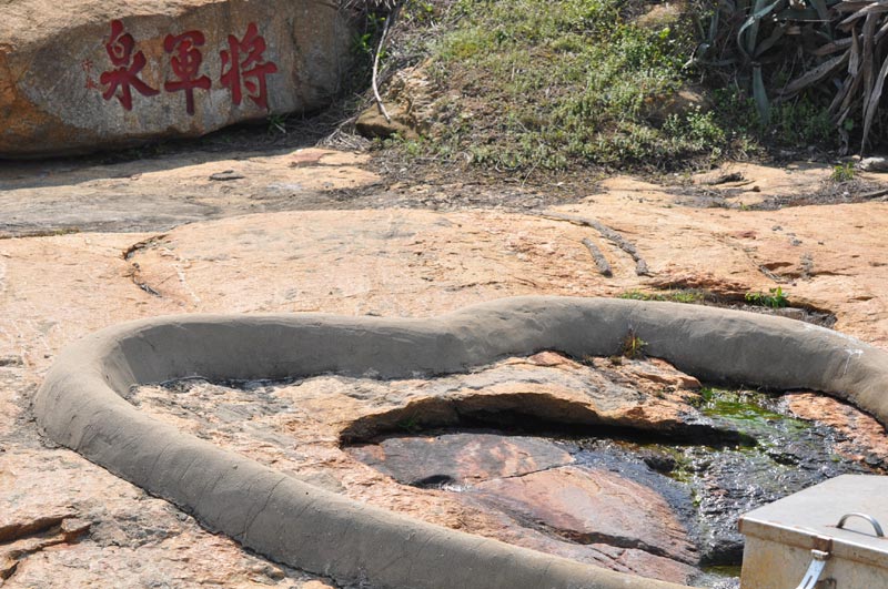 將軍泉又稱汴泉,據水頭地方學者黃國龍指出,將軍泉源出古兜鍪山麓(矛山),兜鍪為將軍的頭盔,故名將軍泉.這口井的泉水乃自石頭縫湧出,水質甘美,流量雖小卻源源不絕,可說是金門重要泉井之一.昔日盧若騰由賢聚故居踱步到此汲水回去泡茶,胡璉將軍由水頭轉駐太武山時也常派小兵過來汲水回去飲用.