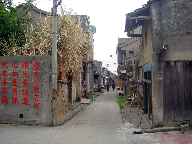 沙美老街雖然號稱有八街八巷,實際上是以三民路、仁愛路、信義路為主軸,幾乎包辦了所有商業活動,目前雖然風光不再,但其輪廓依稀可辨,目前儘剩部份店家以豆腐、麵線、理髮等行業營生.老街因年代久遠,產權分散相當嚴重,整修相當不易.但金門已有維護傳統建築風貌獎勵條例可以解套,加上業主配合意願濃厚,就差有關單位出不出手了.