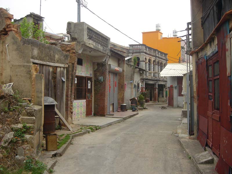 沙美老街是金門最早形成的市街之一,,也是民國五十年代金門的物流中心,而風水輪流,在山外新市和後浦街市相繼繁盛後,沙美老街的衰微就無可避免了.而這一片頹圮之中最引人注目的莫過於老街盡頭的這一棟張文帝洋樓了.