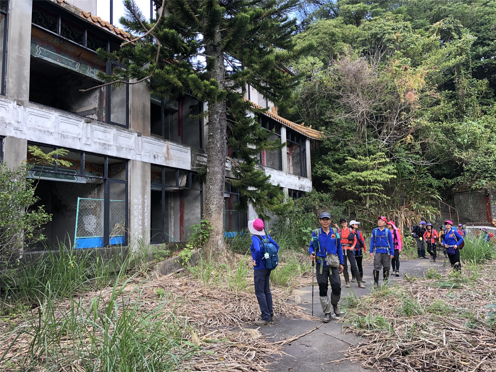 15:06廢棄雲霄飯店(020 ),H301 m,雲霄飯店位於石門水庫風景區內,屬於石門水庫管理局,回想當年亞洲樂園盛極一時,我和老婆密月時還來度假,亞洲樂園20幾年前倒閉了,雲霄飯店不堪虧損,荒廢形同廢墟,聽說還鬧鬼,不勝唏噓;下樓梯往管理中心的路被圍住了,只好取左柏油路蜿蜒而下。