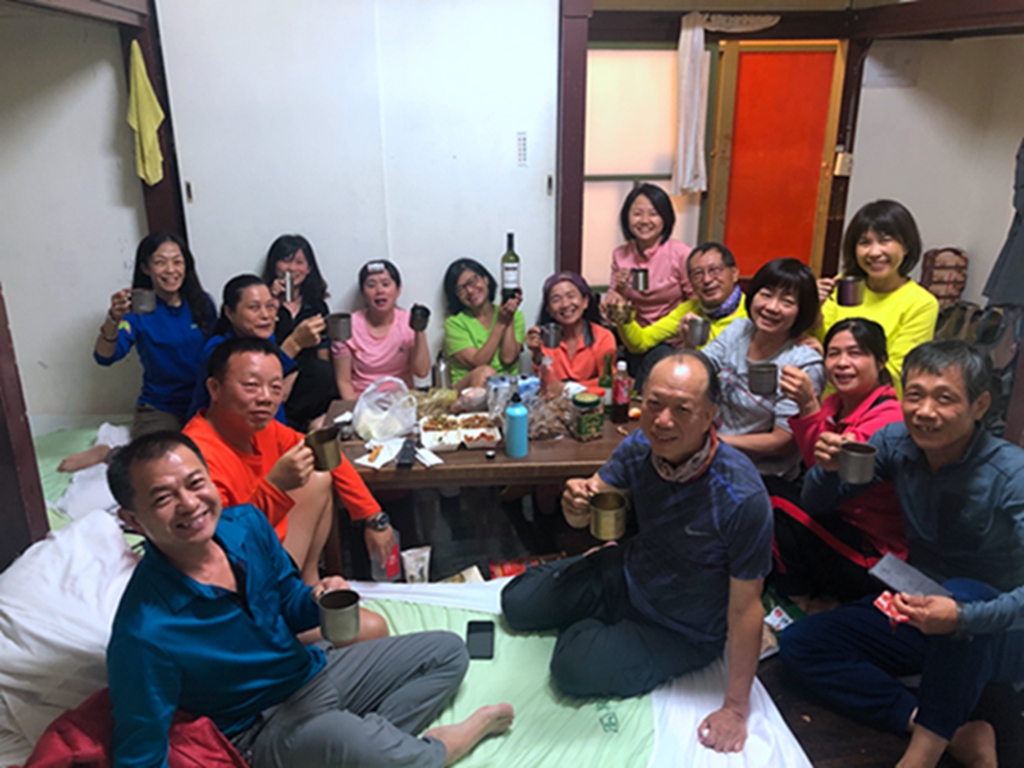 16:00抵角板山青年活動中心,琴娥CHECK IN後分配房間,六人通鋪3500元/房,女隊員迫不及待去逛角板山形象商圈,因再晚一些山上的商家要關門了;晚餐在活動中心裡享用火鍋後回房開趴,人生短短幾個秋阿,不醉不罷休~氣氛熱絡,笑聲幾乎掀開屋頂;9點後就寢儲備體力,準備迎接明日一場硬仗。