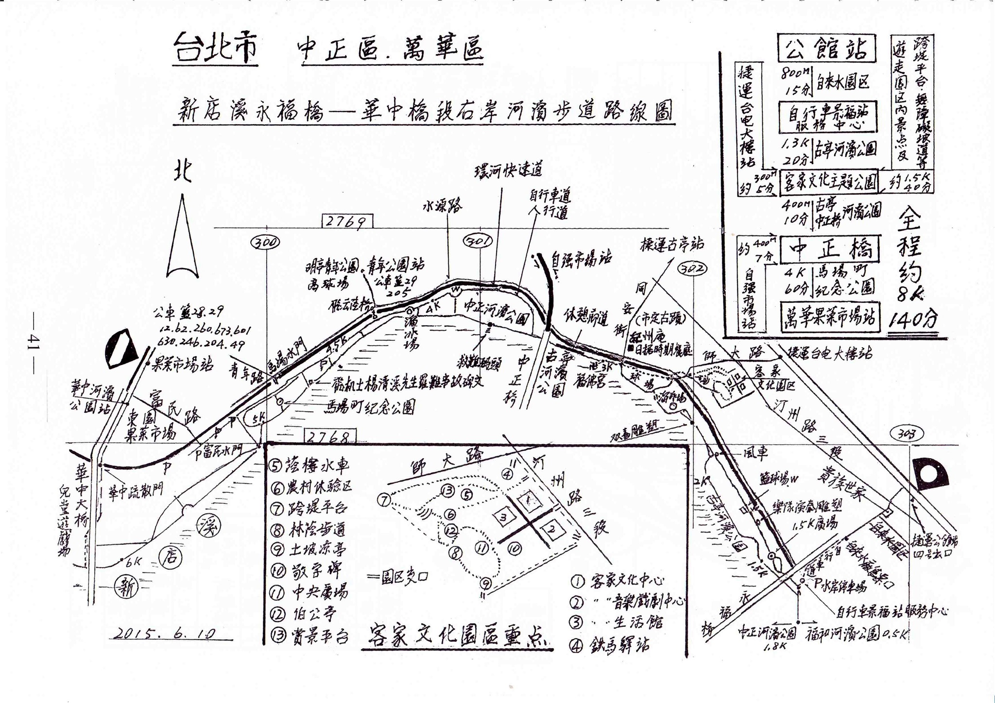 (十二041) 新店溪永福橋、華中橋段右岸河濱步道路線圖