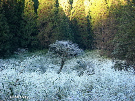 天終於快亮了,努力鑽出睡袋,先在火堆旁取暖,待會要準備早餐了,而眼前是一片白茫茫的世界,簡直無法置信,我們彷彿處在雪國世界,明明沒有寒流報到,居然比上週在3000m高的閂山還冷,昨晚到底是零下幾度C呢?