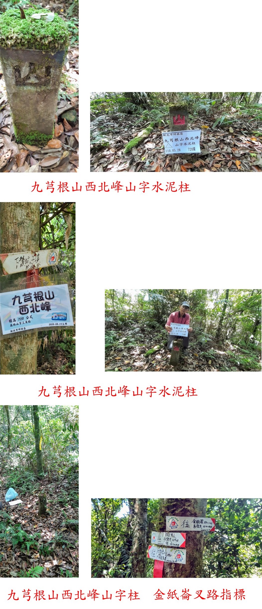 3、九芎根山西北峰:位於新北市坪林區,標高720公尺,山字水泥柱;座標314792 2752886。