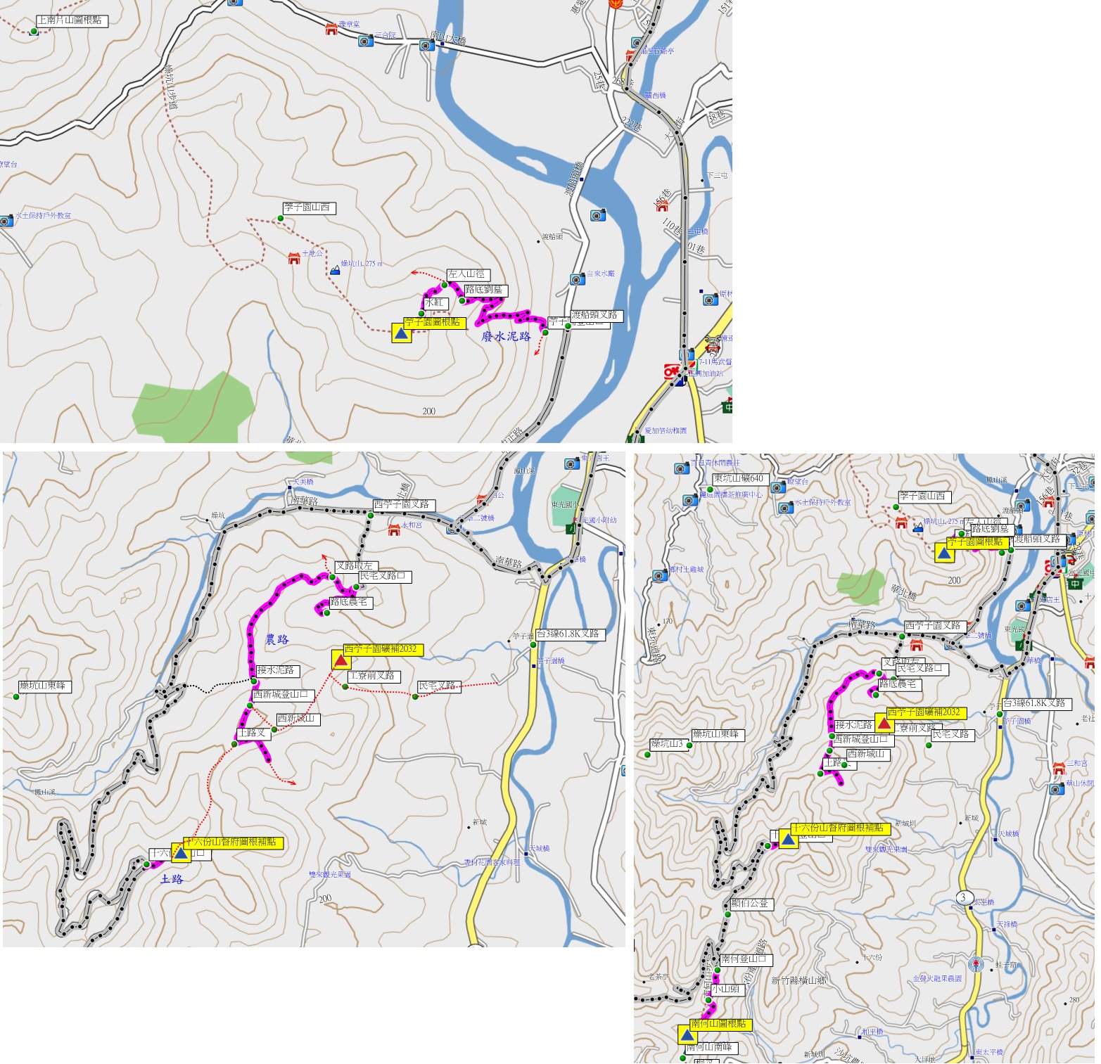 新竹關西等地區連續來幾次都遇到下雨,周六雨停了再度來到此山區,首先的二確山殖產局補點,往返走24分;第二座的南何山圖根點往返走40分,亦輕鬆達陣;第三座的小尾山北峰圖根點,有好幾條路線,最後由竹36線方向上登,選到最遠的路線,此山往返走91分;第四座十六分山總督府圖根補點,於路旁,往返只要10分鐘;第五座的的西苧子園礦補2032,走北面的路線,浪費近1小時找不到正確山徑,以失敗收場;最後的苧子園山圖根點,由渡船頭方向上山,此山往返走56分,有些辛苦!