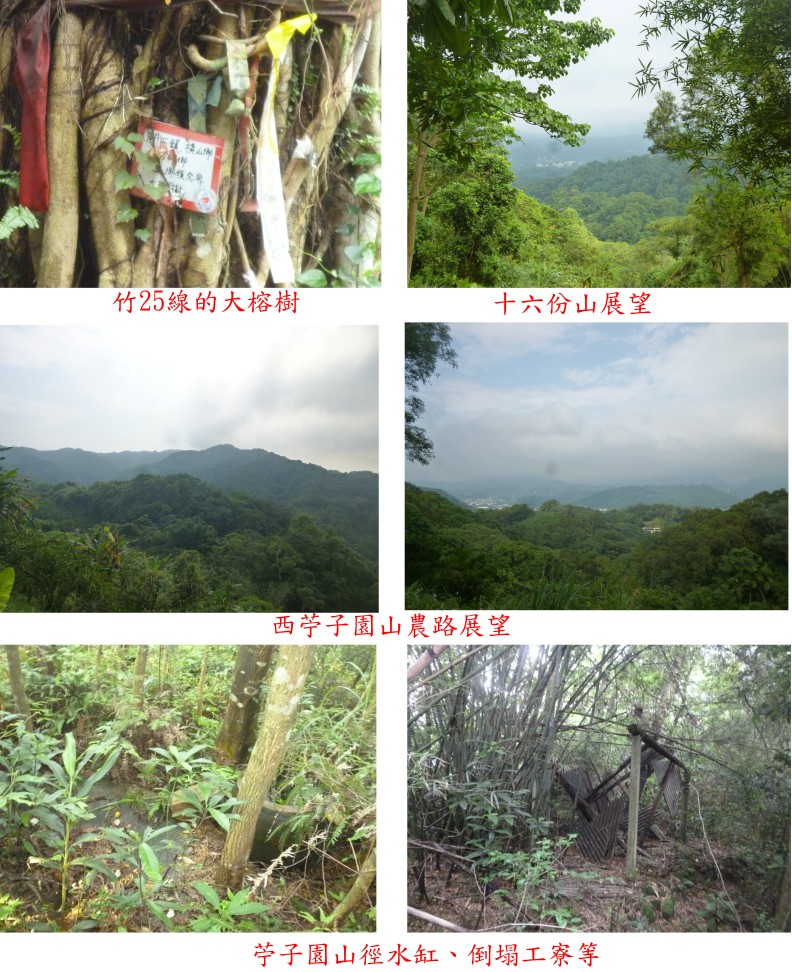 四、十六份山:又稱西坑山,位於新竹縣關西鄉,標高360公尺,總督府圖根補點。