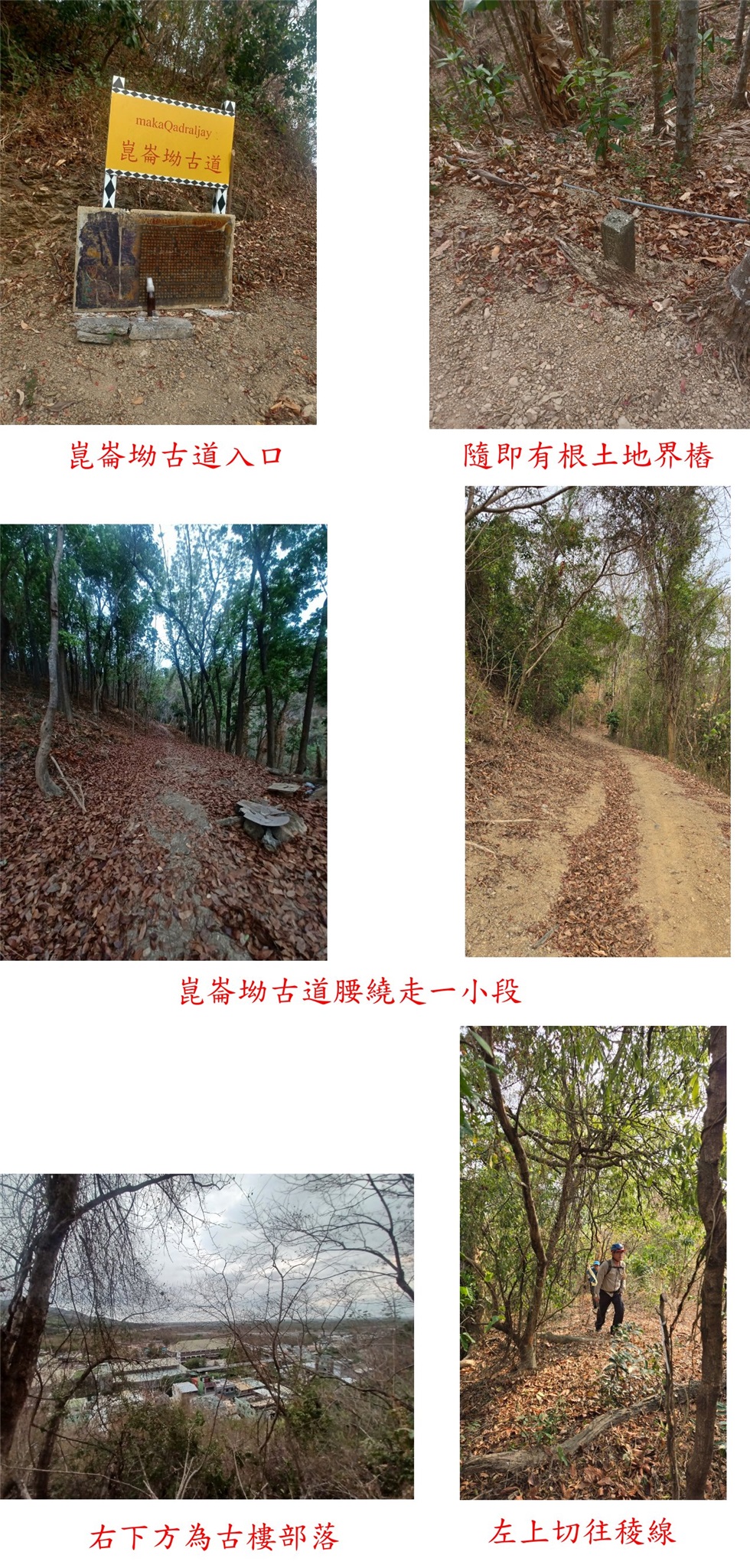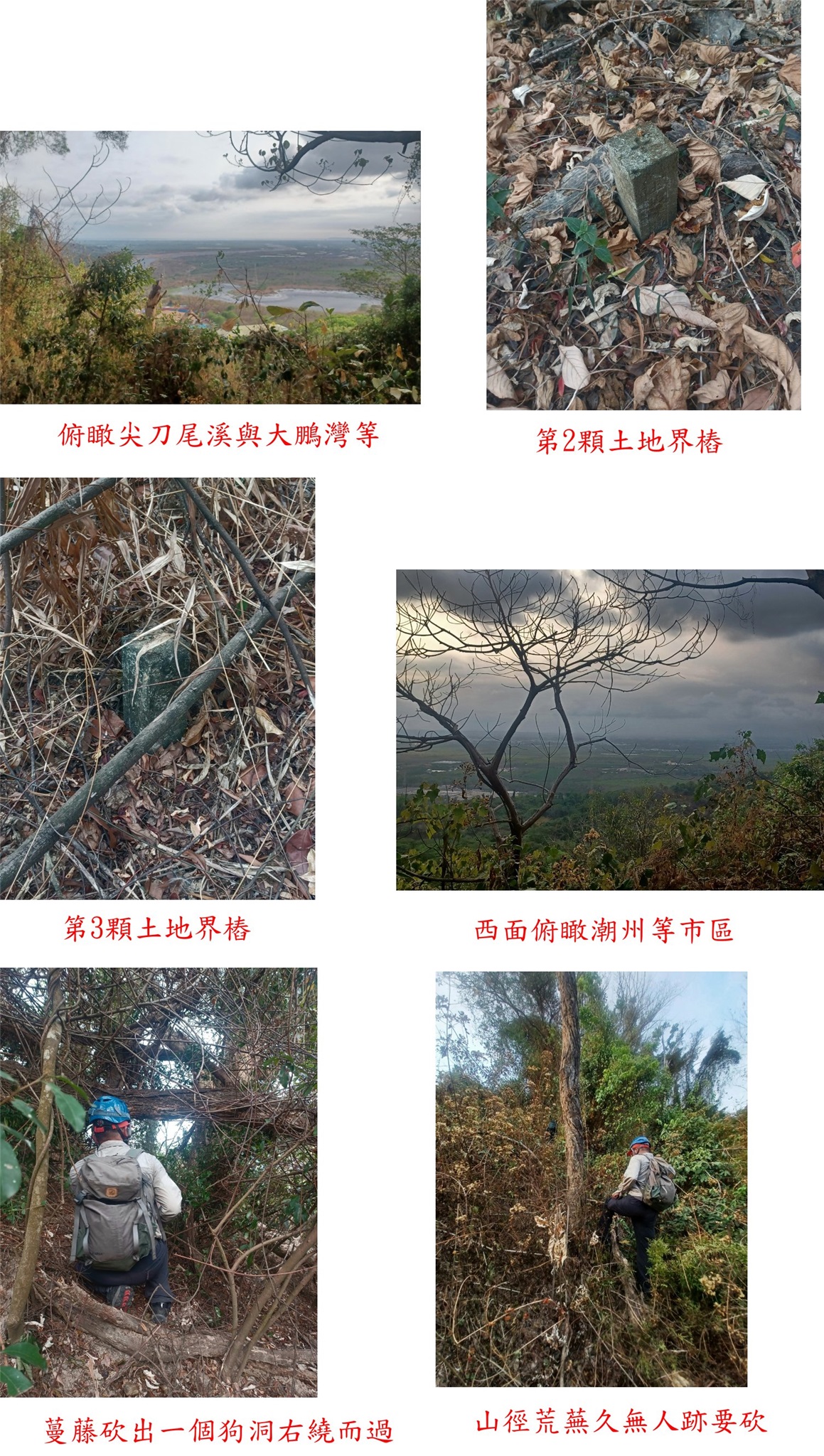 16:19出發,登山口隨即有根土地界樁,古道腰繞走約330公尺,右下方為古樓部落。
