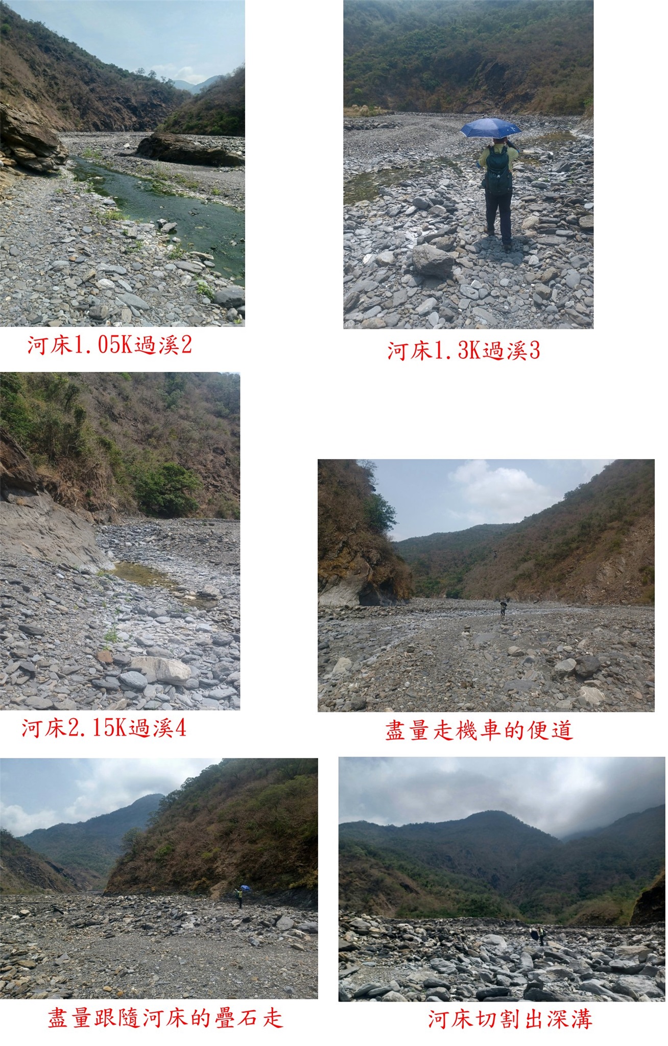 10:43河床1.05K過溪2,盡量走機車的便道,寬廣的乾河床如何走任君選擇,常見到疊石指示方向。