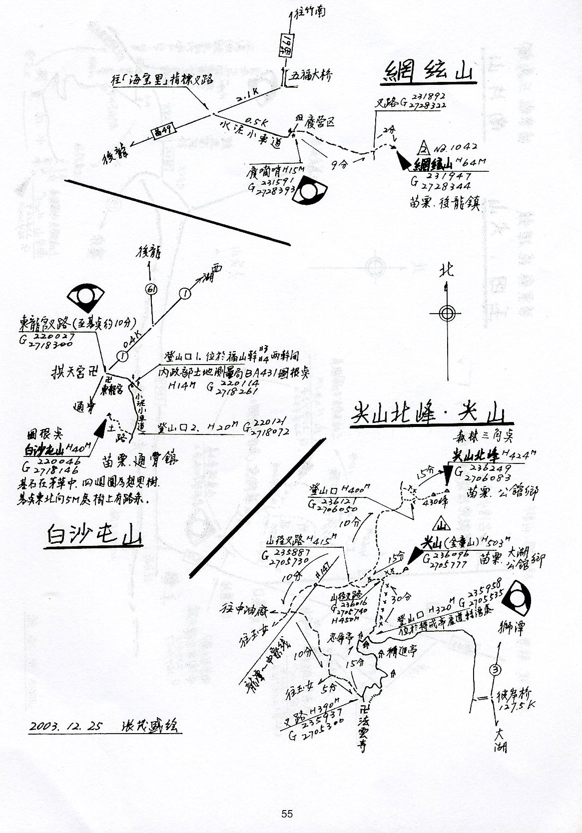 • 網弦山,白沙屯山,尖山,尖山北峰