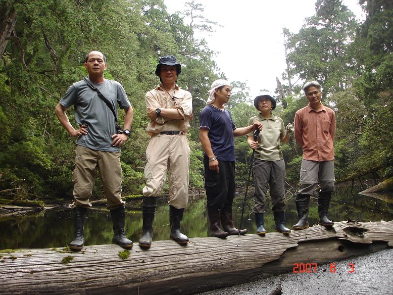 0955~1001 抵玫瑰池,是山谷窪地積水所形成的水池,茂密的樹林圍繞四週,樹影倒映池面,枯倒巨木橫臥池中,有種遺世孤立靜謐的美。拍照後原路退回