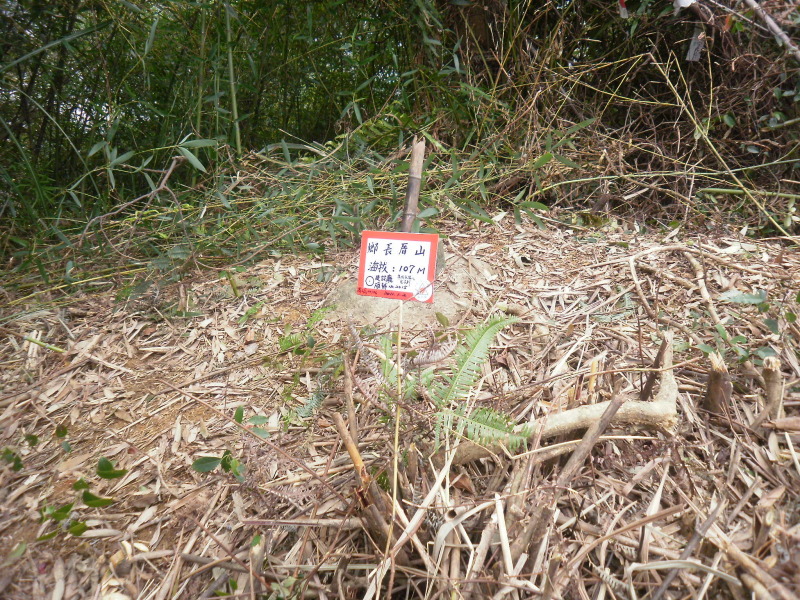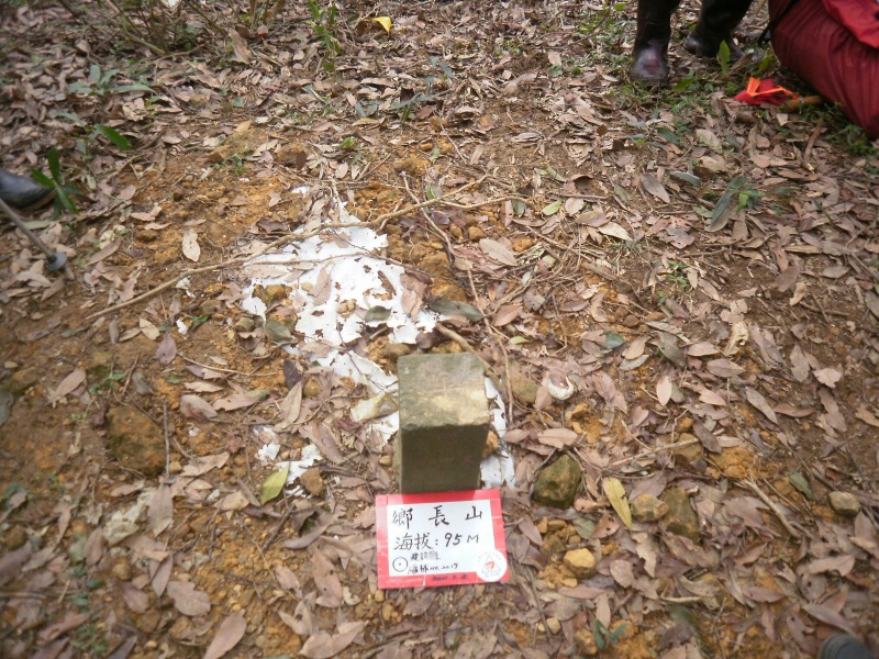 08:55 保線路寬敞好行,須臾間已經來到鄉長厝山」根據資料原有一建設廳基石礦補 NO.2015,已不知去向。現頂上改立一高工局 NO.146 水泥基石 標高107公尺。雖然已知結果,大伙還是不死心,於是就砍開山頭竹林,看看是否有奇蹟出現,不過搜尋許久還是毫無所獲。