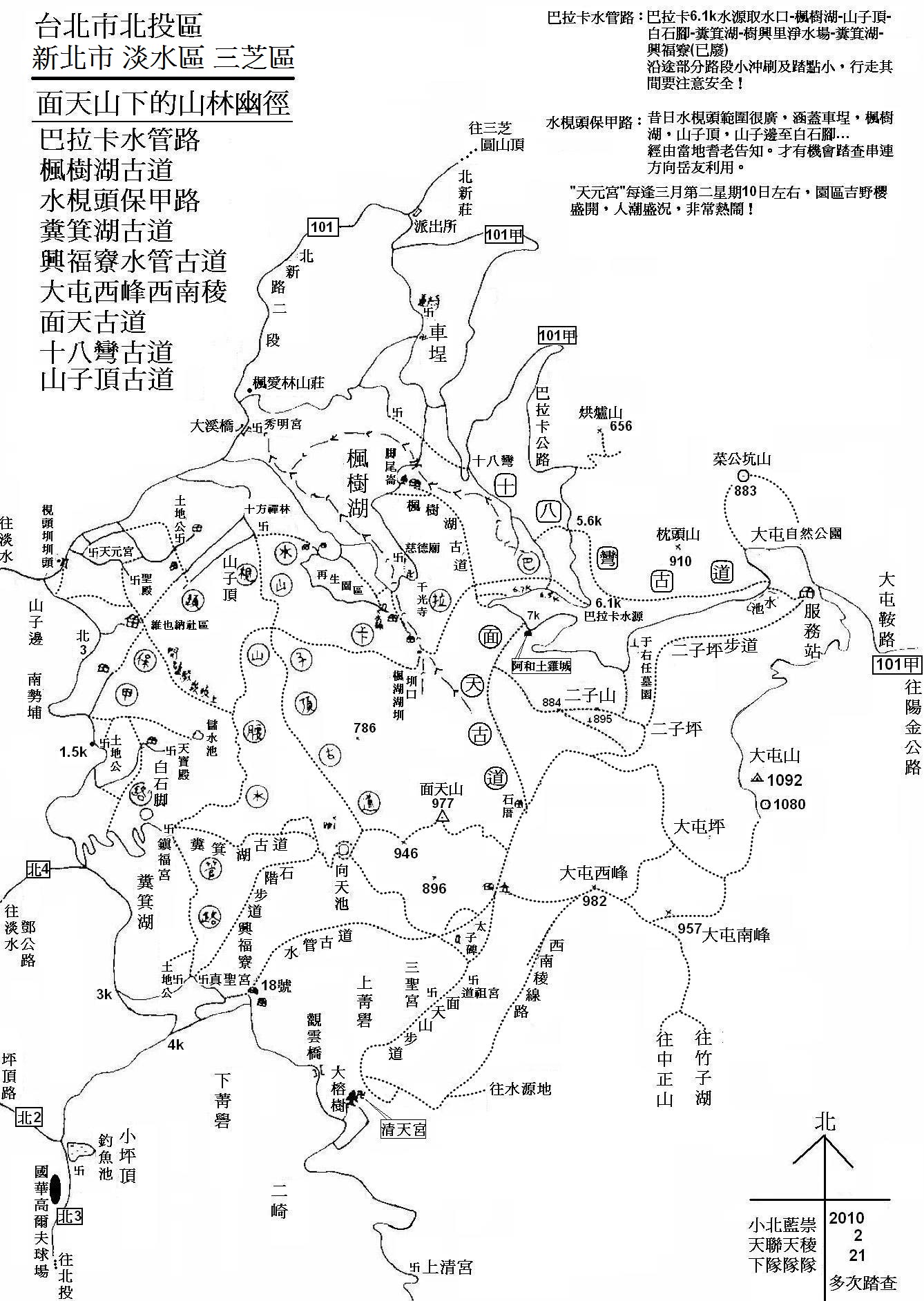 (十223) 北投區淡水鎮三芝鄉:面天山下的山林幽徑2010年