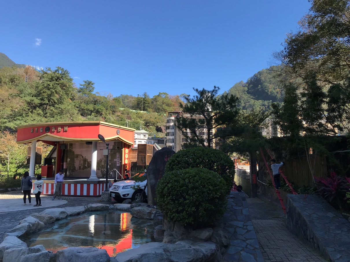 過吊橋後即可達谷關公園,可在泡腳池享受小魚咬腳的樂趣。