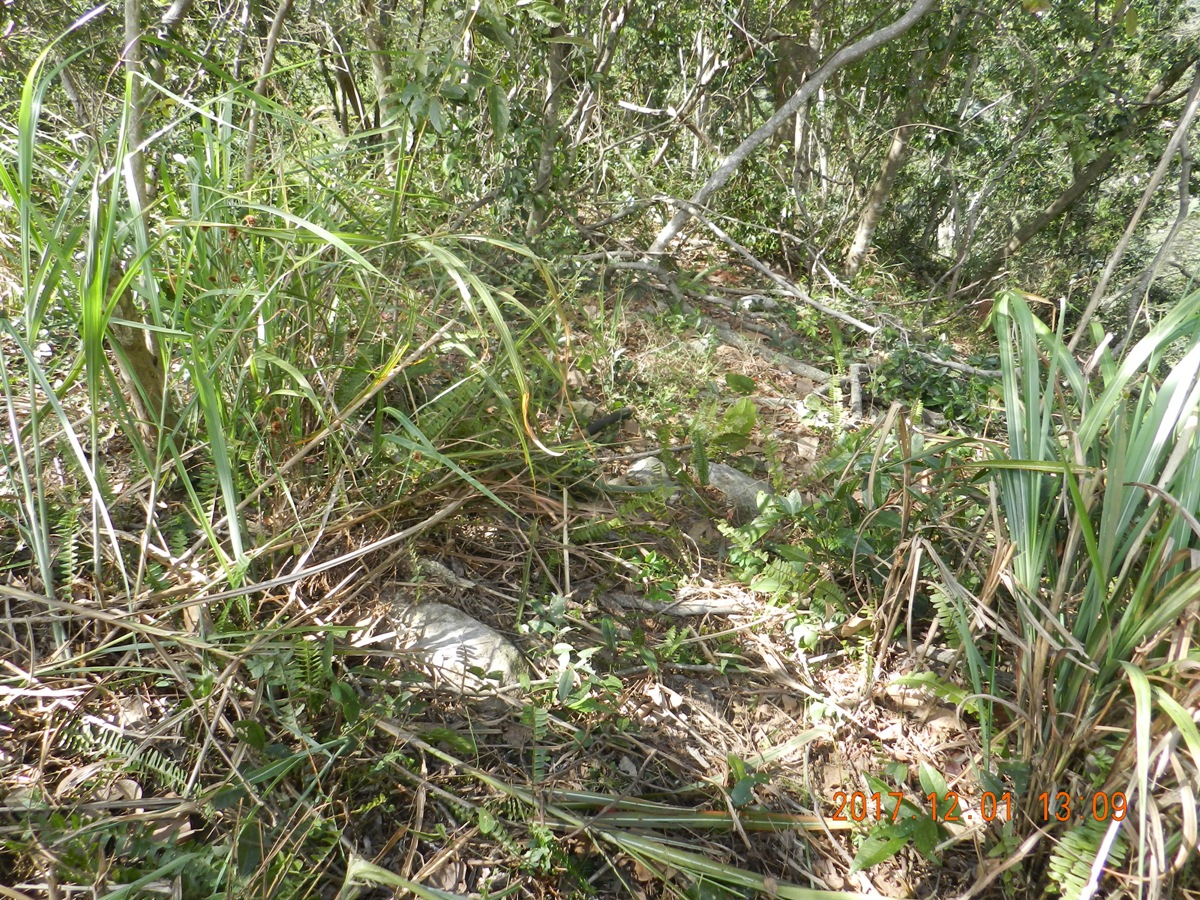 繼續沿瘦稜小徑陡下,到鞍部後再陡上,走約