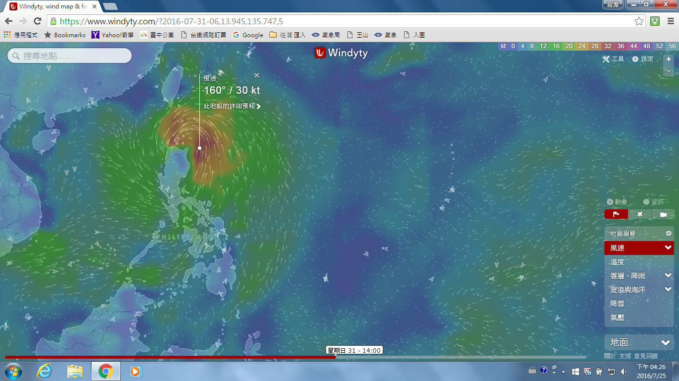 今天 7/25 我在該站上,又看到數學模式計算出,7/31 菲律賓有颱風。雖然預測是朝海南島前進,但外圍環流可能影響台灣山區的氣候,而且路徑說不定會生變,提供給大家參考。