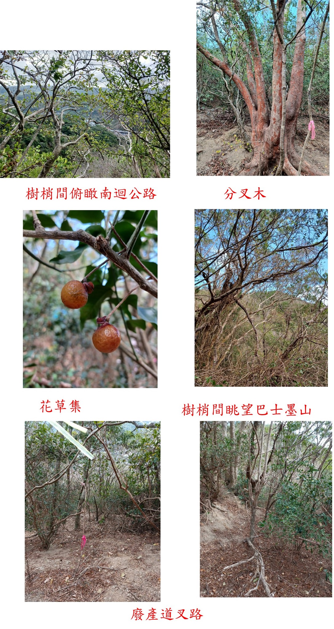 10:40跨越廢產道,左可接回10:29廢產道叉路,續行山徑往下。