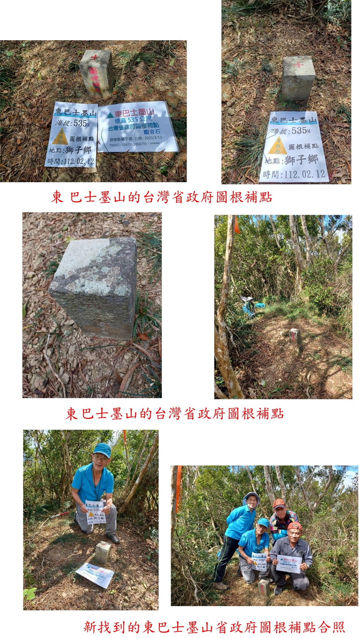 3、東巴士墨山:位於屏東縣獅子鄉,標高532公尺,台灣省政府圖根點;座標224729 2458707。