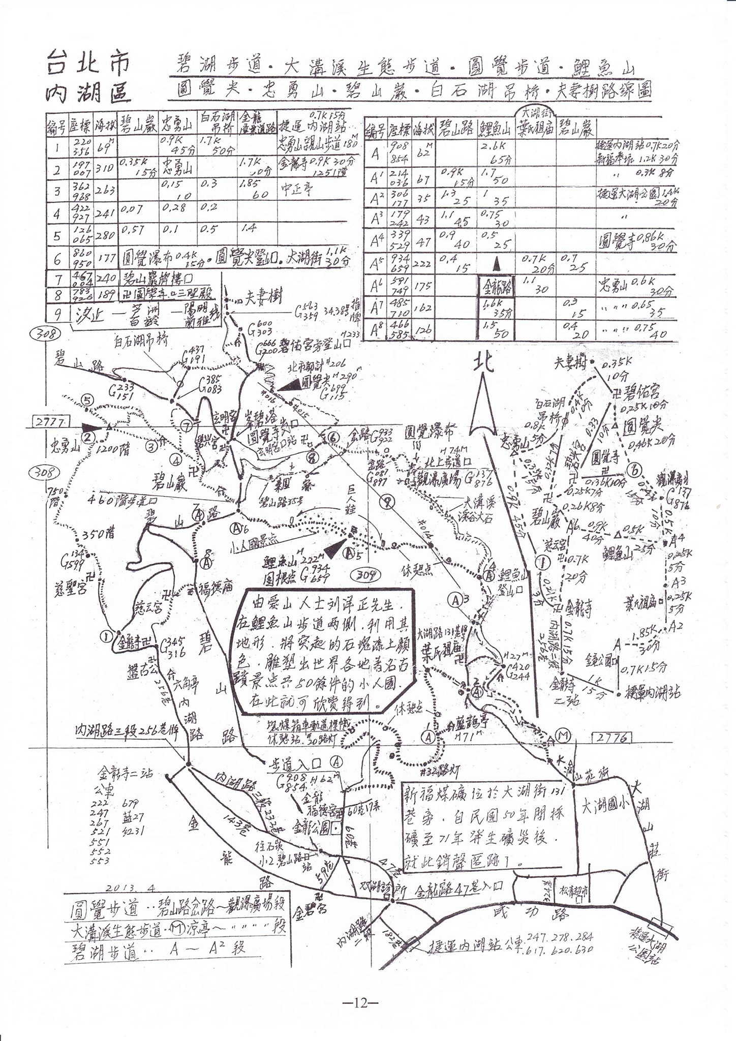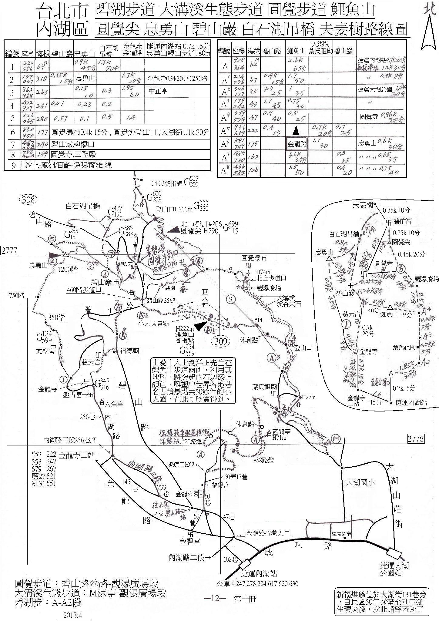 (十012) 台北市內湖區 碧湖步道.大溝溪生態步道.圓覺步道.鯉魚山.圓覺尖.忠勇山.碧山巖.白石湖吊橋.夫妻樹路線圖2013年