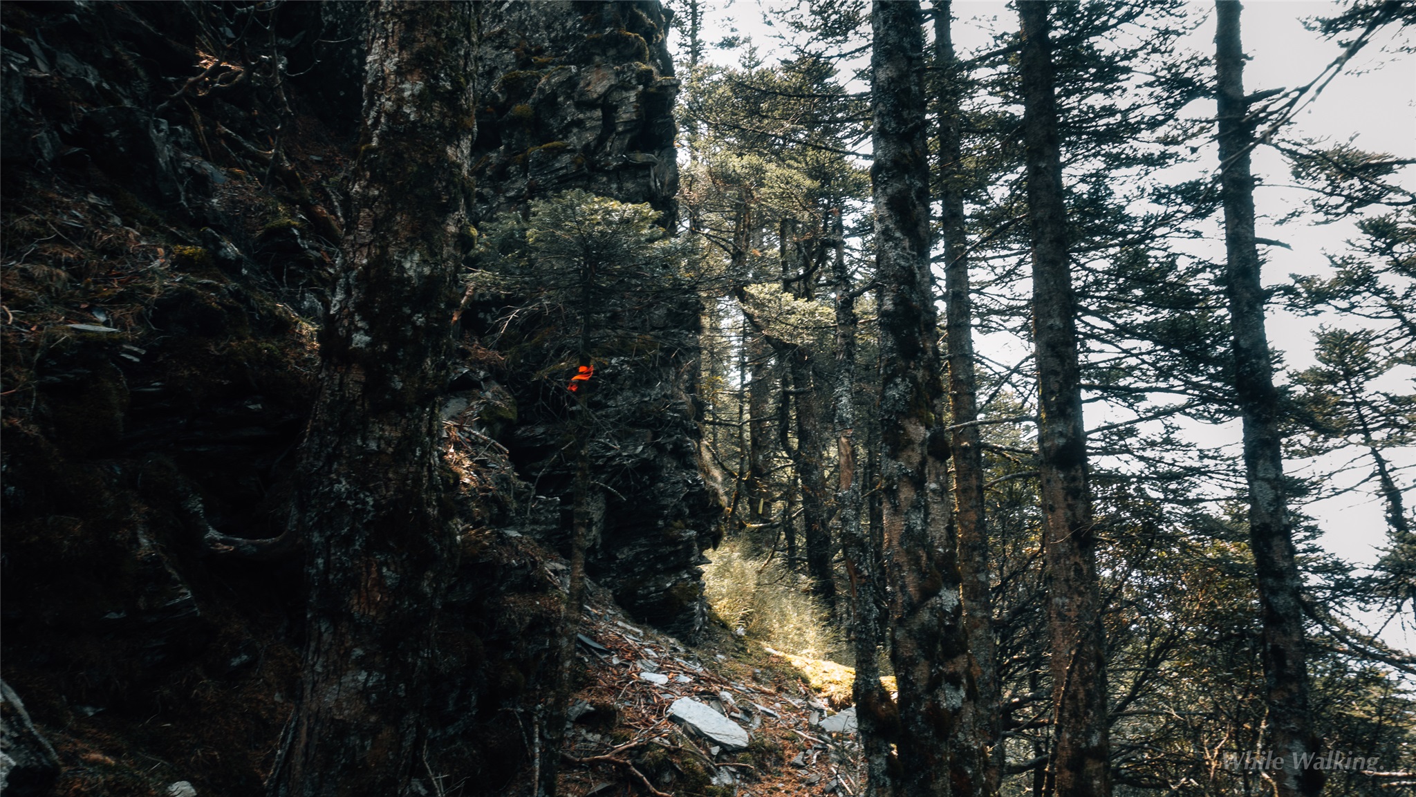 往南峰的路上,不如想像中的難走,應該是往巴巴山的人還算多,路跡、路徑品質都相當好且清楚,走起來也就得心應手的快了許多,有些路段甚至是邊看手機邊走的。