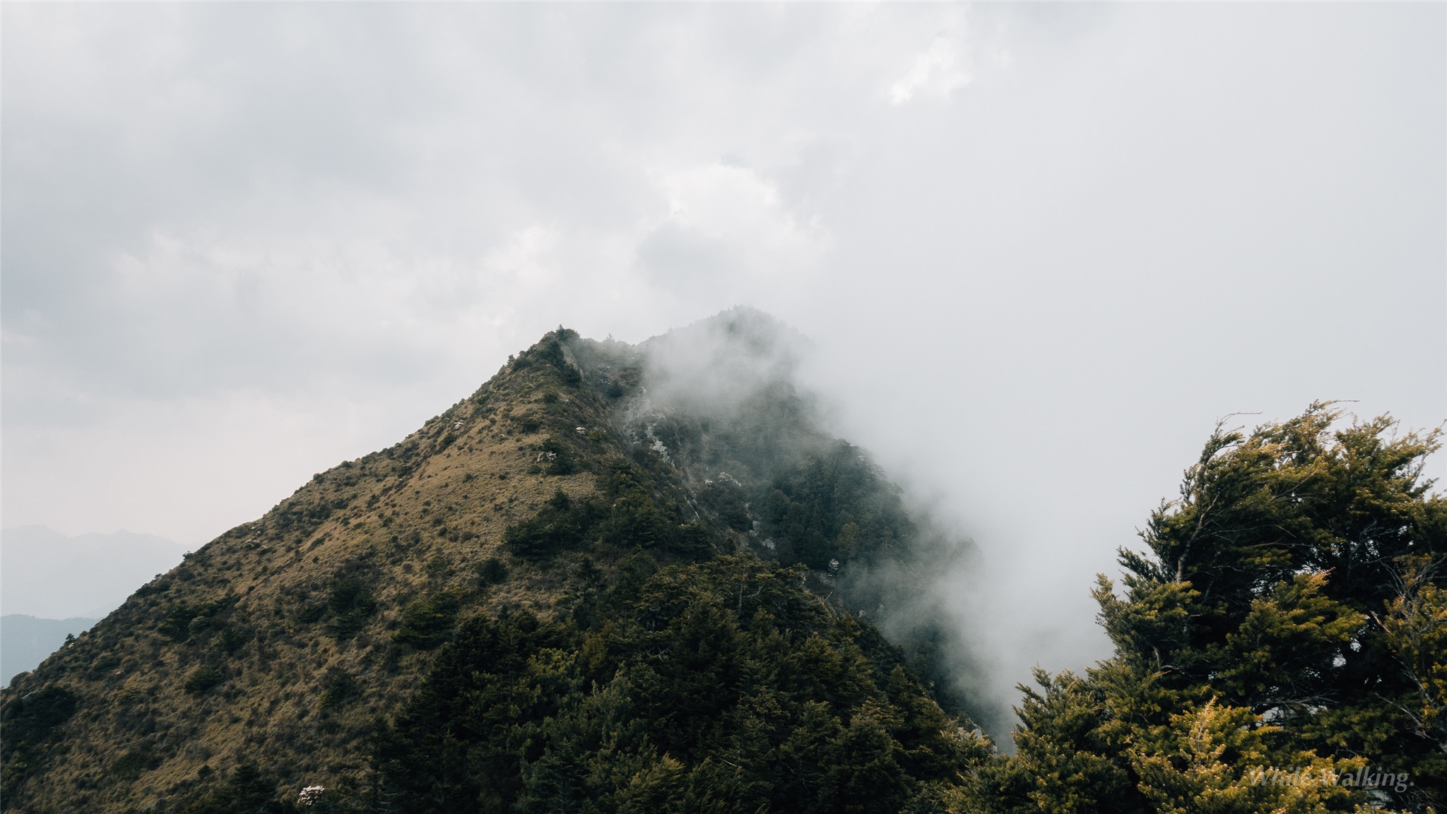 告別了山友,背起背包下山,山腳的雲霧已逐漸遮蔽鞍部,為了明天早點回到登山口,還是得加緊腳步下山去。