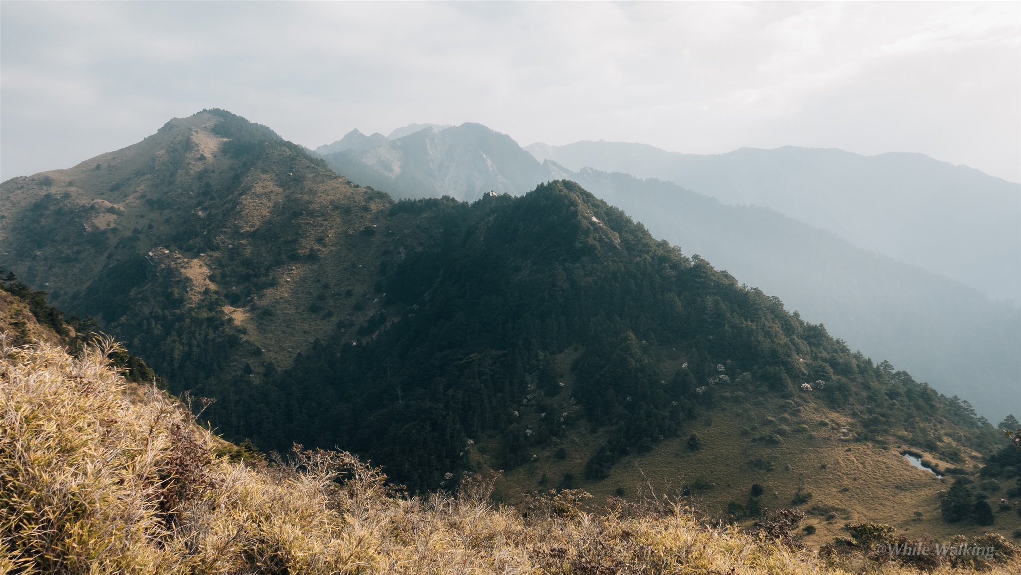 而且一路上視野、景觀大好,一面望著沒多久勢必能到的鞍部水池以及明日行程的起伏山嶺,心情在此刻也終於放鬆、不如過去幾個小時那樣緊繃了。
